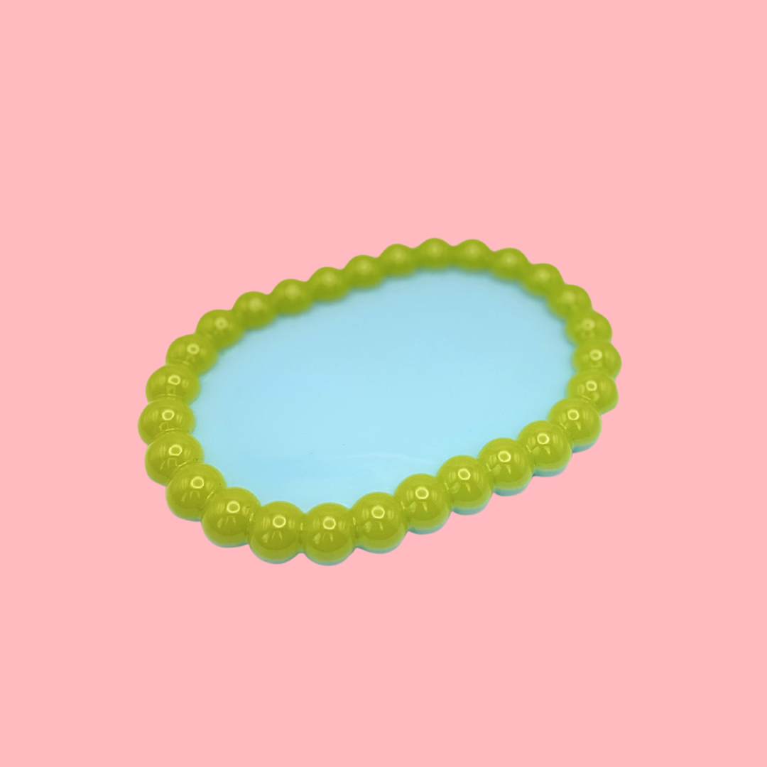 Glide into whimsy with this one-of-a-kind resin tray, where icy swirls meet springtime charm. Each handmade piece captures the quirky magic of ice skating when flowers bloom—a delightfully funky conversation starter for your coffee table, desk, or shelf. The playful bubble details and organic resin finish make it as fun to look at as it is functional. Perfect for corralling remotes, jewelry, or just vibing with its artistic energy.